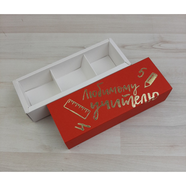 Коробка Этне 3 шубер красный гладкий тиснение "Любимому учителю" золото