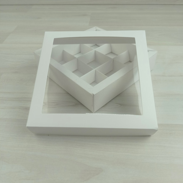 Вкладыш-разделитель на 9 конфет входит в комплект. Если вкладыш не нужен - напишите нам, мы вычтем -5р/шт. Коробка поставляется в виде заготовки и требует сборки. Пожалуйста, помните, что коробки тиражом более 10шт можно заказать только кратно десяти.