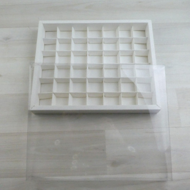 Коробка на 42 конфеты Прозрачная крышка. Дно, разделитель из мелованного картона.