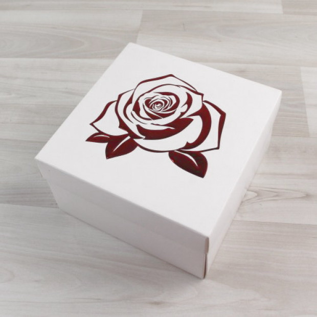 из мелованного картона. Крышка глухая с рельефным тиснением "Роза".