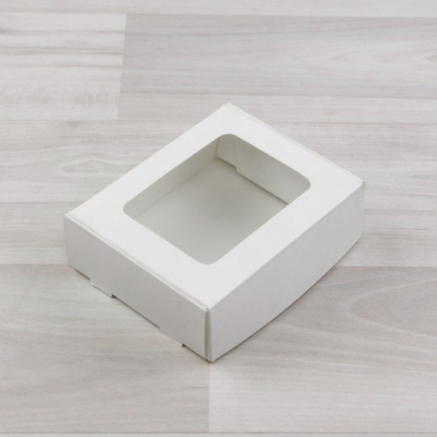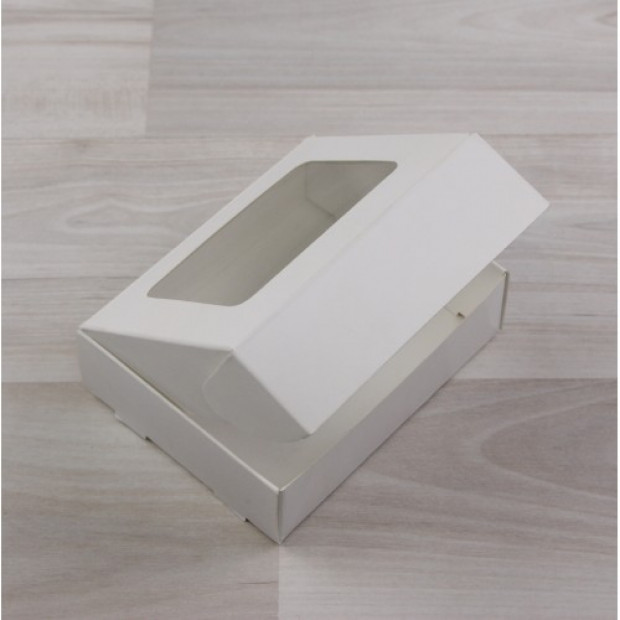 Коробка-пенал из мелованного картона, тонкий борт. Крышка клапан с окном.