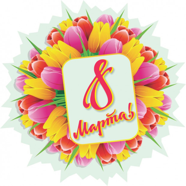 Наклейка "8 Марта!" цветок (комплект 10 шт.)