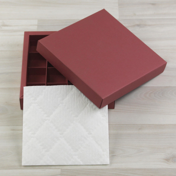 Используется как прокладка в коробку с конфетами чтобы изделия при транспортировке плотно фиксировались в коробке.