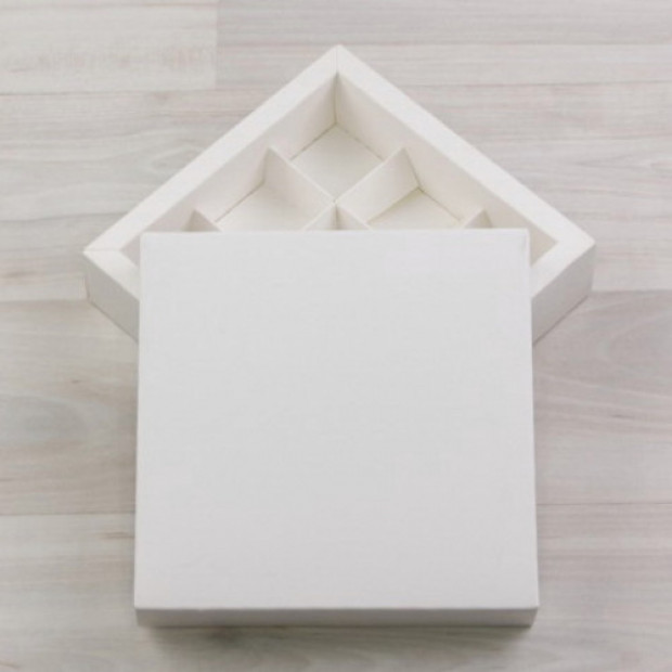 Вкладыш-разделитель на 9 конфет входит в комплект. Если вкладыш не нужен - напишите нам, мы вычтем -5р/шт. Коробка поставляется в виде заготовки и требует сборки. Пожалуйста, помните, что коробки тиражом более 10шт можно заказать только кратно десяти.