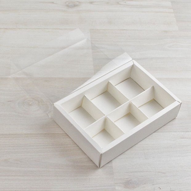 Вкладыш-разделитель на 6 конфет входит в комплект. Коробка поставляется в виде заготовки и требует сборки. Пожалуйста, помните, что коробки тиражом более 10шт можно заказать только кратно десяти.