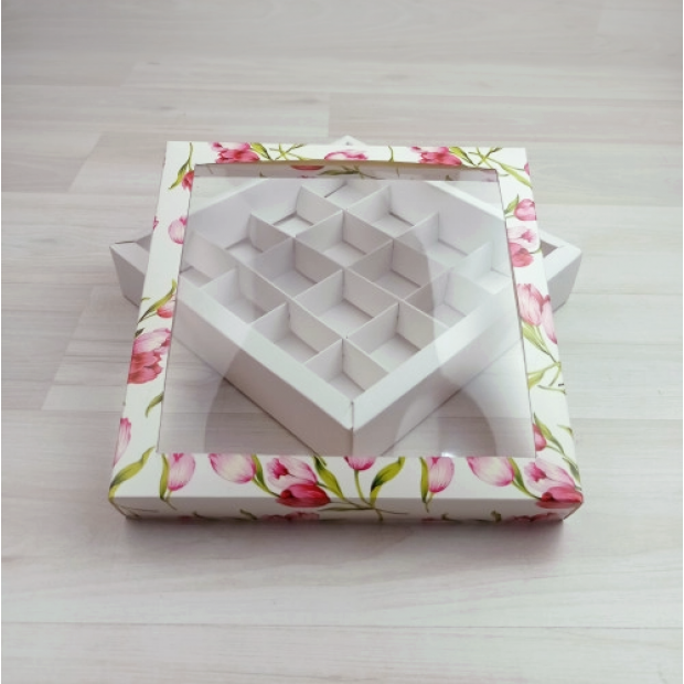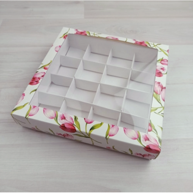 Если вкладыш не нужен - напишите нам, мы вычтем -10р/шт. Коробка поставляется в виде заготовки и требует сборки. Пожалуйста, учитывайте, что коробки тиражом более 10 шт. можно заказать только кратно десяти. Вкладыш-разделитель на 16 конфет входит в комплект.