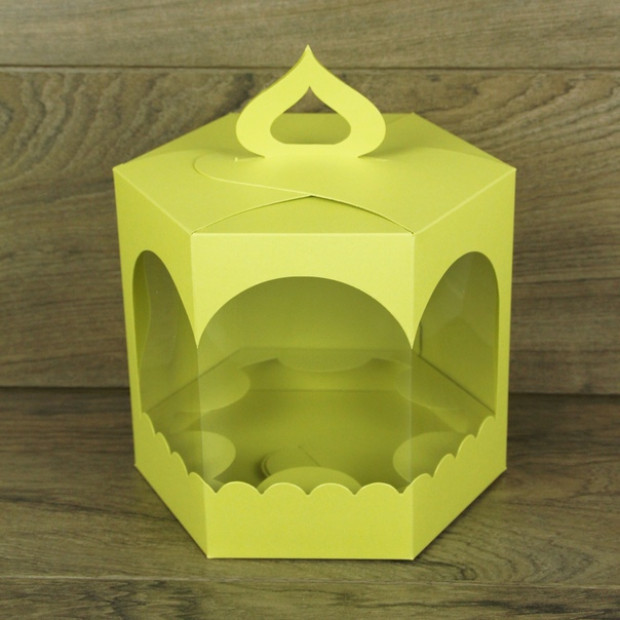 КОРОБКА "Большой Кулич" цвет Фисташковый. Дизайнерский картон. ВАЖНО! ВКЛАДЫШ продается отдельно под диаметр кулича 100-155 мм. Фото с вкладышем № 2.