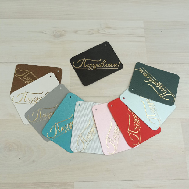 Бирка ассорти тиснение "Поздравляем!" золото (комплект 10шт)