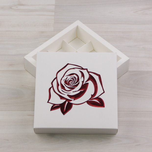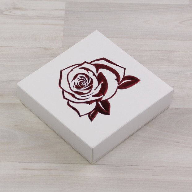 Коробка Элара 9 белый с рельефным тиснением "Роза красная"