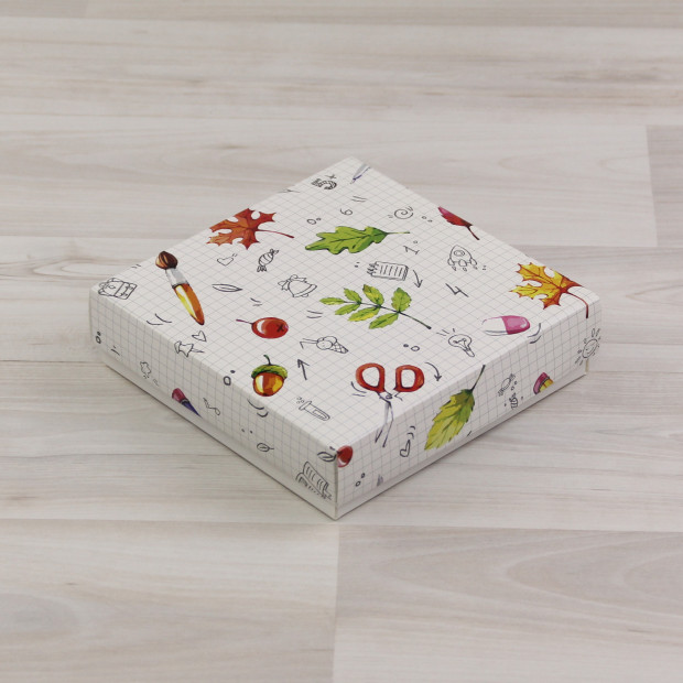 Крышка - дизайнерский картон/ дно и разделители - мелованный картон.