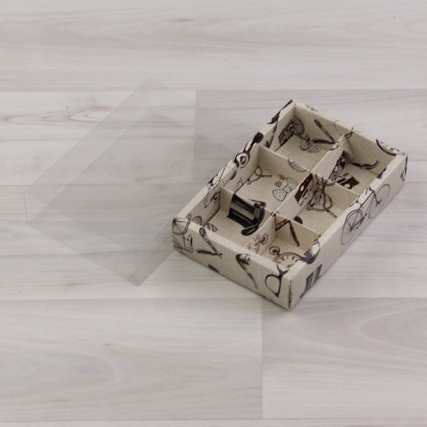 Коробка на 6 конфет. Дизайнерский картон. Крышка прозрачная, тип "Шубер" (задвигается как спичечный коробок) Склейка не требуется. Склейка шуберов производится полупрозрачной белой клеевой лентой, место склейки не является прозрачным. Расположение элементов может отличаться от представленного на фото.
