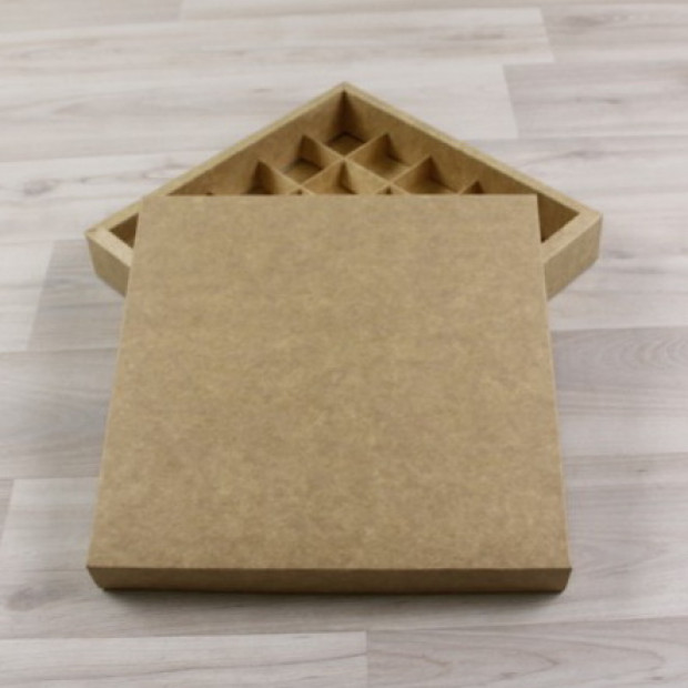 Коробка на 25 конфет из крафт-картона, двухсторонняя. Можно собрать на крафт сторону, а можно на белую. Крышка глухая.